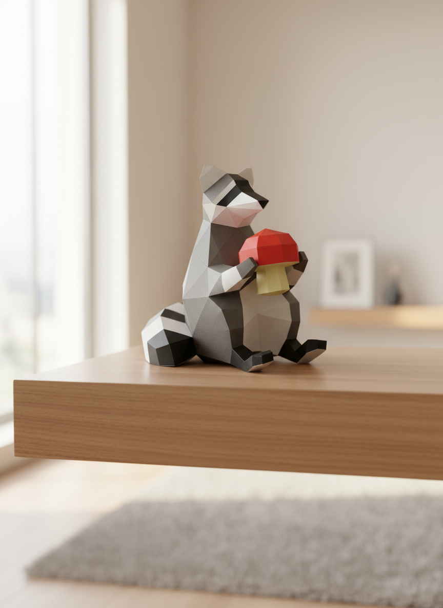 Craft a touch of woodland whimsy with this DIY papercraft raccoon kit. With precision-cut paper pieces and straightforward instructions, you can easily fold and assemble an endearing raccoon, sitting in all its adorable glory. Perfect for quick crafting sessions, this project brings charm to any space, making it an enjoyable endeavor for both beginners and seasoned craft enthusiasts alike.